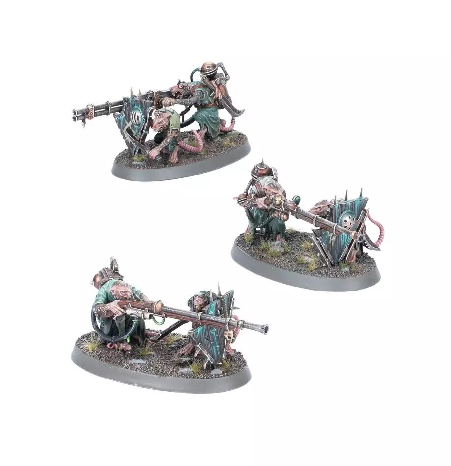 Ce kit en plastique permet d'assembler trois équipes de Jezzails à Malepierre, des unités de tir habiles pour votre armée de Skavens. Ces assassins à longue portée aiment abattre l'ennemi depuis une distance prudente, et leurs boucliers les rendent étonnamment résistants. Tous les porteurs de boucliers s'adaptent à n'importe lequel des artilleurs du kit, et vous trouverez les options permettant d'assembler un champion avec une arme à double canon, ce qui vous permet de personnaliser facilement votre unité.