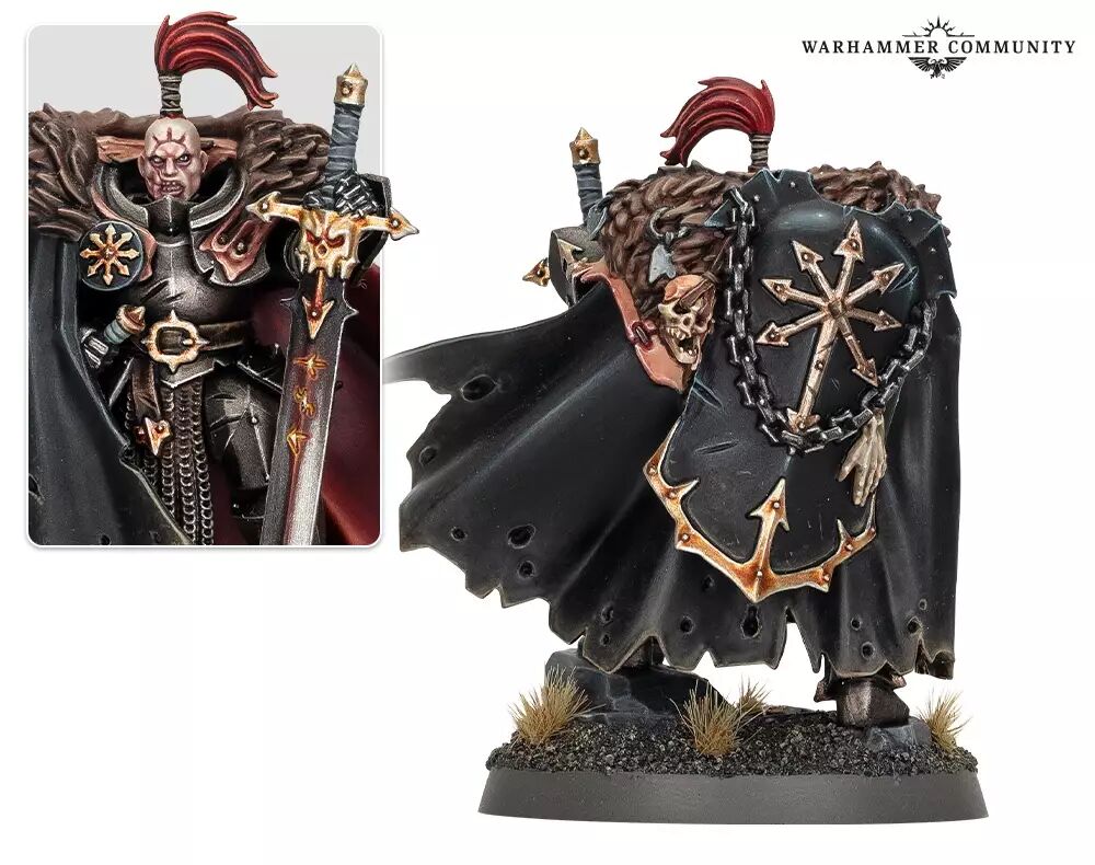 Réf. : 83-109 Ce personnage imposant possède bien la silhouette typique des champions du Chaos, avec une cape tirée par le vent et une posture impérieuse. Il vous offre le choix entre le classique casque à cornes surmonté d'une étoile à huit branches, ou un visage couturé de cicatrices noueuses. Peu importe pour lequel vous opterez, il suscitera une certaine angoisse dans le cœur de ses ennemis, à n'en pas douter.