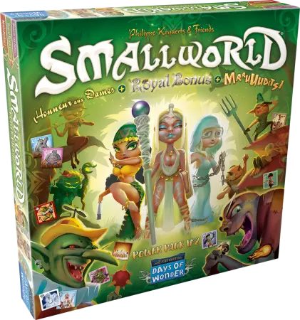 Ce Power Pack regroupe tous les Peuples et Pouvoirs Spéciaux de Maauuudits !, Honneur aux Dames et Royal Bonus ainsi qu'une boîte pour ranger et organiser tous les pions.