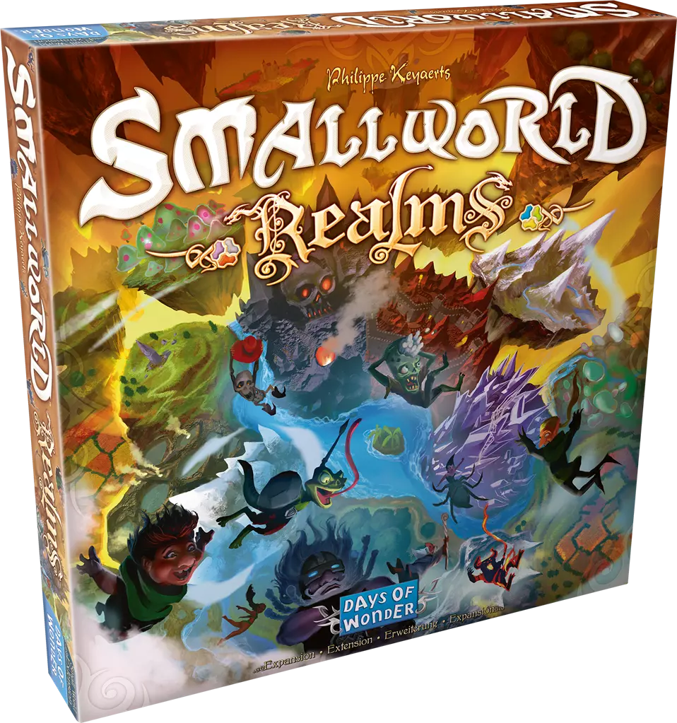 Riche de ses nombreuses tuiles de terrains géomorphiques, Small World Realms est une véritable boîte à outils permettant aux fans de Small World et de Small World Underground de redessiner les frontières du monde. Découvrez douze scénarios d'anthologie comme Le trône rouillé ou Un filon trop loin, ou inventez vos propres scénarios en disposant les tuiles de terrain comme bon vous semble !