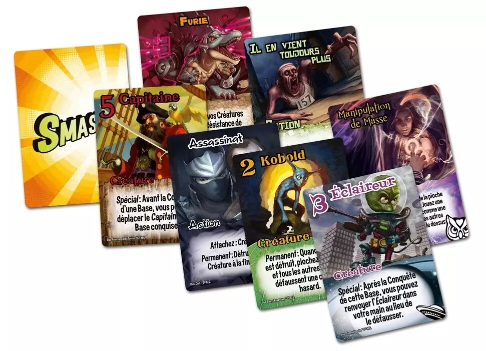Dans Smash Up, prenez la tête d'une armée prête à tout écraser sur son passage ! Choisissez 2 factions, mélangez-les et préparez-vous au combat ! Chaque peuple a son propre style : les pirates voguent de base en base, les zombies reviennent de leur défausse, les ninjas attaquent par surprise, les dinosaures sont gigantesques (et un inconscient les a équipés d'énormes lasers !)...