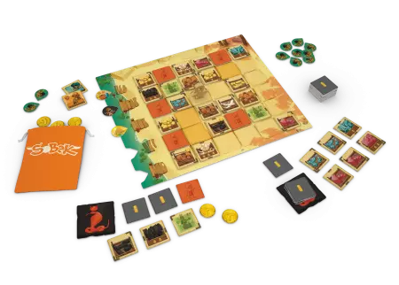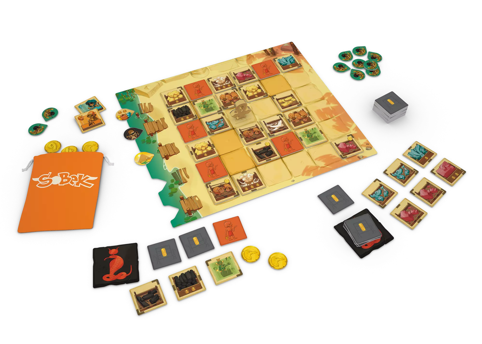 Dans Sobek 2 joueurs, deux adversaires collectent et vendent des Marchandises pour remporter le plus de Points de Victoire. Quand un joueur prend une Marchandise, il en sélectionne une dans l'alignement du pion Ankh et l'ajoute à sa main. Il place alors le pion Ankh dans l'alignement indiqué par la tuile qu'il vient de prendre, déterminant ainsi les choix de son adversaire.