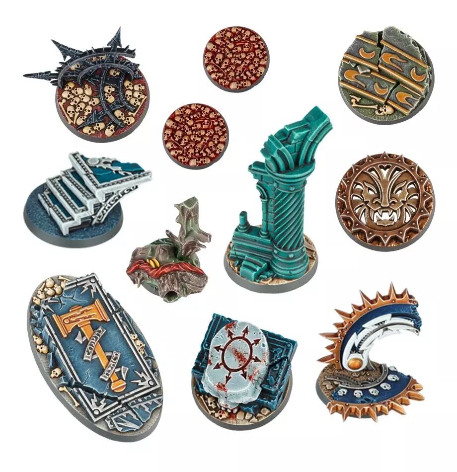 Ces socles de 10 modèles différents permettent de socler vos personnages vite et sans peine. Ils peuvent servir à n'importe quelle armée de Warhammer Age of Sigmar - il suffit de les peindre et d'y coller une figurine.