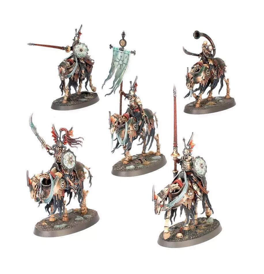 Ce kit en plastique permet d'assembler 5 Chevaliers des Tertres, une unité de cavalerie Raclemort pour votre armée de Seigneurs Ruinemânes lors des parties de Warhammer Age of Sigmar. Montés sur leurs destriers squelettiques, ils sont armés de lances et de boucliers. Ces guerriers rapides et polyvalents constituent une excellente unité de harcèlement, et peuvent même briser les lignes ennemies quand ils sont déployés en nombre.