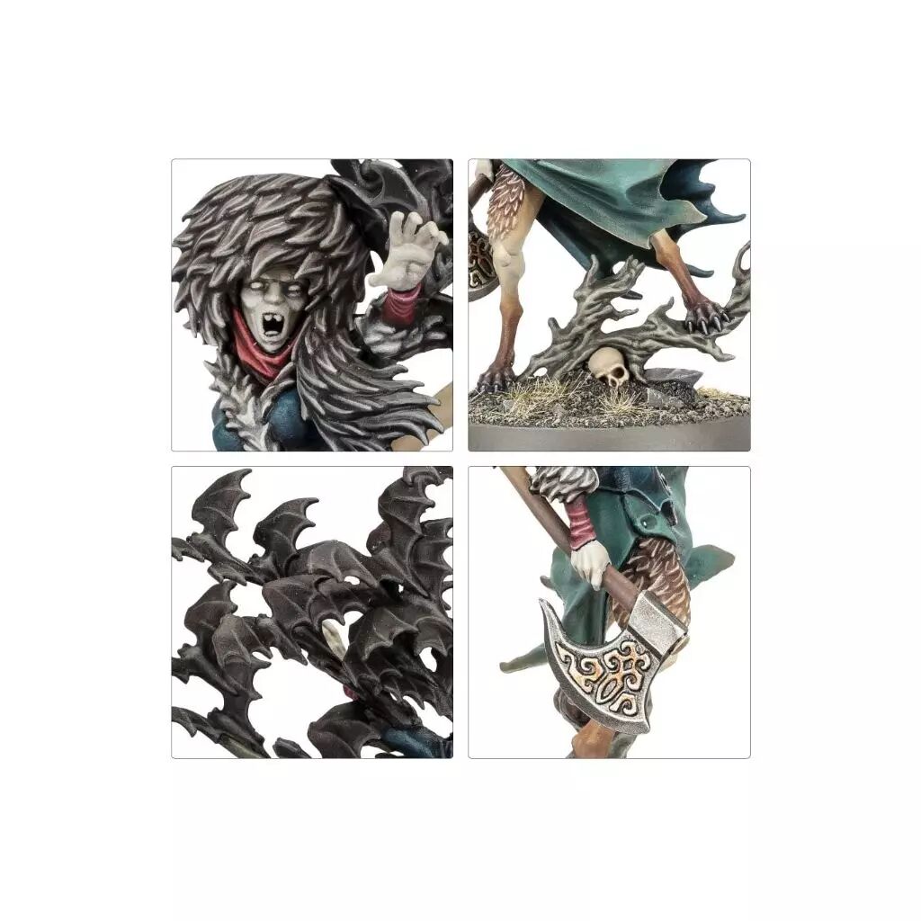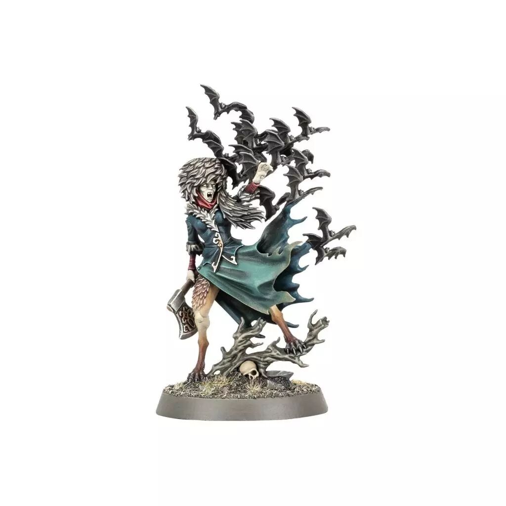 Ce kit plastique permet d'assembler une Ivya Volga, la Paria, une puissante chasseuse de monstres pour les Seigneurs Ruinemânes. Cette chasseresse lupine est enveloppée par le nuage bardé de crocs de ses loyales chauves-souris et tient sa hache ancestrale avant de se mettre en chasse. Son visage aux longues canines est tordu par un grognement sous son épaisse chapka, tandis que ses cheveux et sa jupe flottent dans un vent surnaturel.