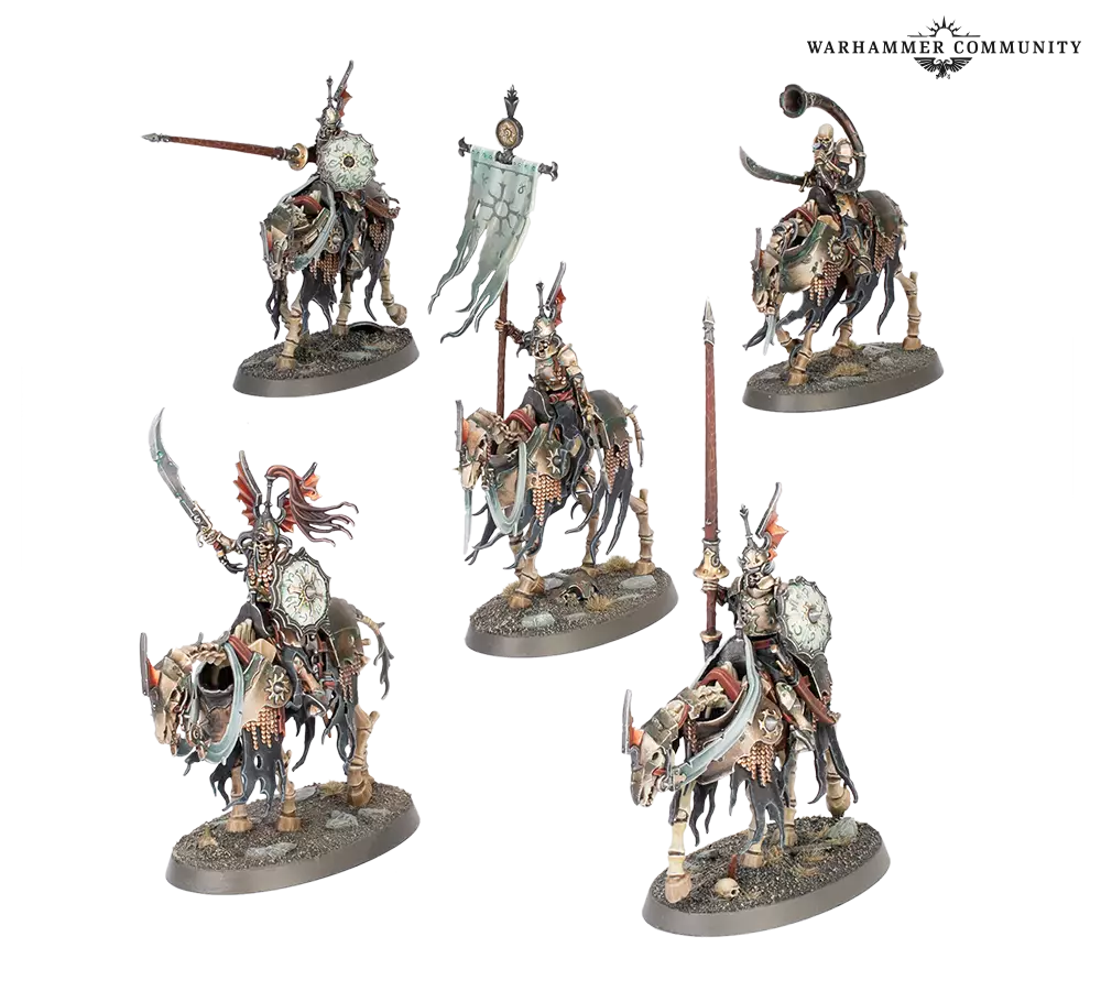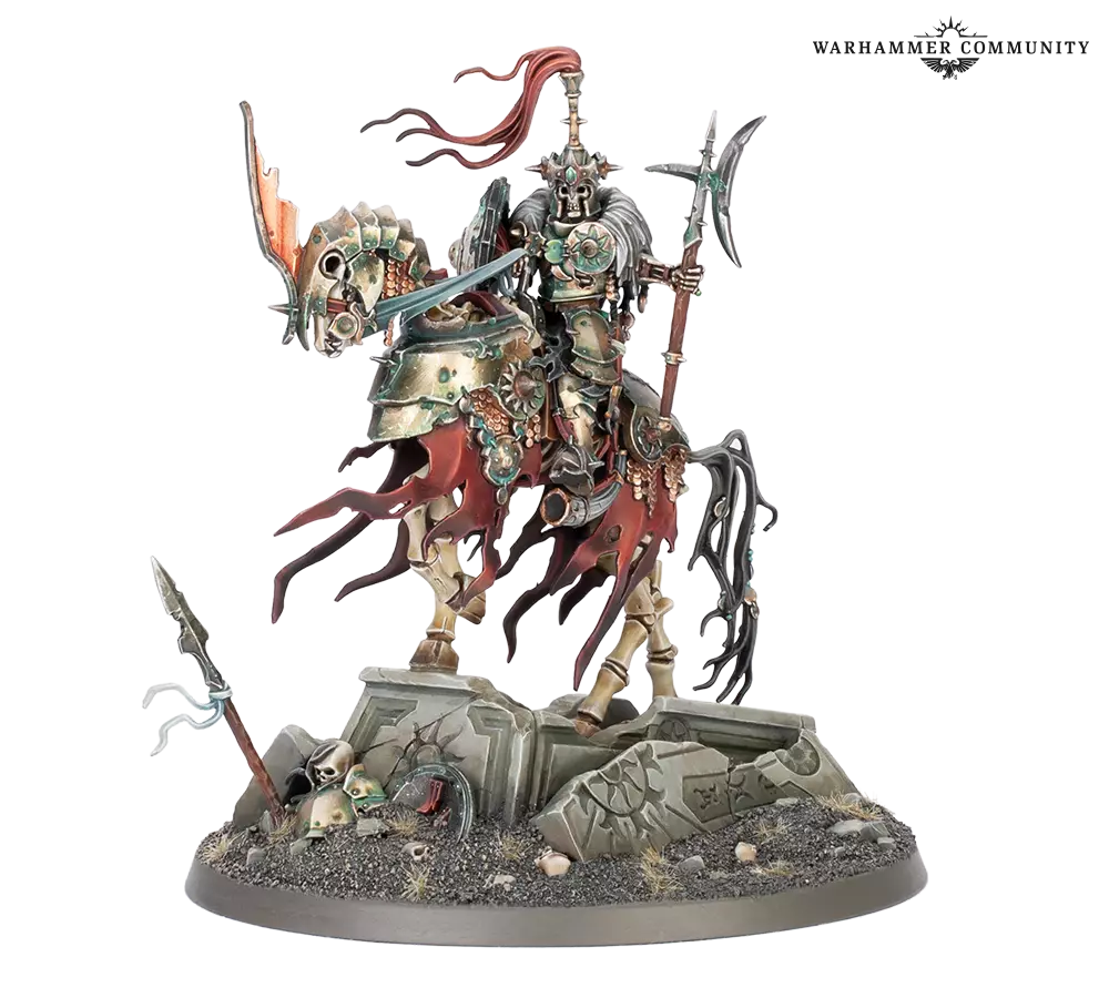 Cette légion est dirigée par un impérieux roi Wight sur son destrier squelettique, mais vous pouvez également le construire en tant que seigneur Wight de moindre importance. Il est à la tête d'une unité de cinq puissants chevaliers de Barrow et de 20 gardes de Barrow, une suite d'élite promise à une mort prématurée par leur seigneur.