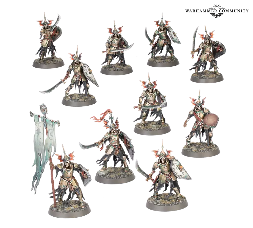 Il y a également un ensemble de 55 cartes de rouleau de guerre couvrant vos unités, les règles de faction, les régiments et armées de renom, et le nouveau fer de lance de l'Hôte de la Tombe. Cette boîte est l'un des deux endroits où vous pourrez acquérir ces cartes ; elles seront également disponibles dans la prochaine édition Gamer's du Battletome (disponible jusqu'à épuisement des stocks).