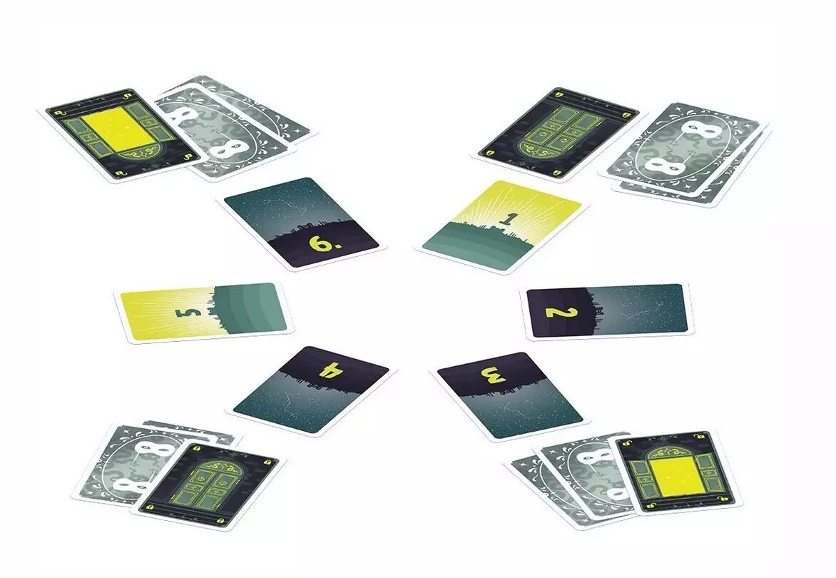 Matériel : 13 cartes Masque (valeurs 0 à 9 et serpents), 9 cartes Jour & Nuit, cartes Porte et un livret de règles.