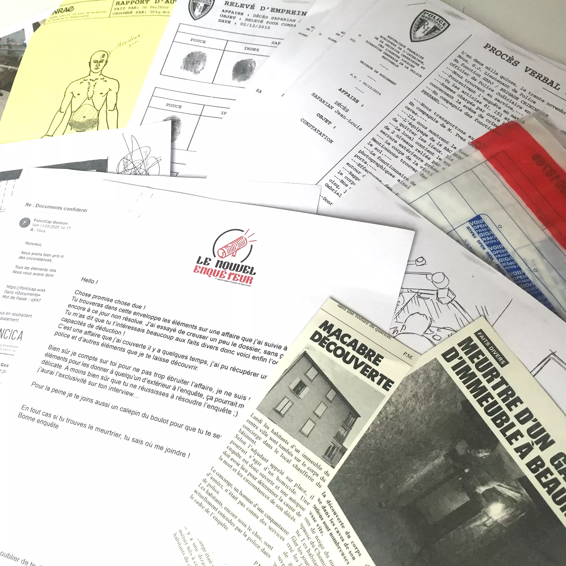 Chaque boîte Sous Scellés est unique et le contenu varie. DOCUMENTS CONFIDENTIELS (rapports de police, témoignages, notes), PREUVES A ANALYSER (photo, audio, vidéos, objets), INDICES CRYPTÉS OU VÉRROUILLÉS mais aussi des éléments qui vous emmènent HORS DE LA BOÎTE !