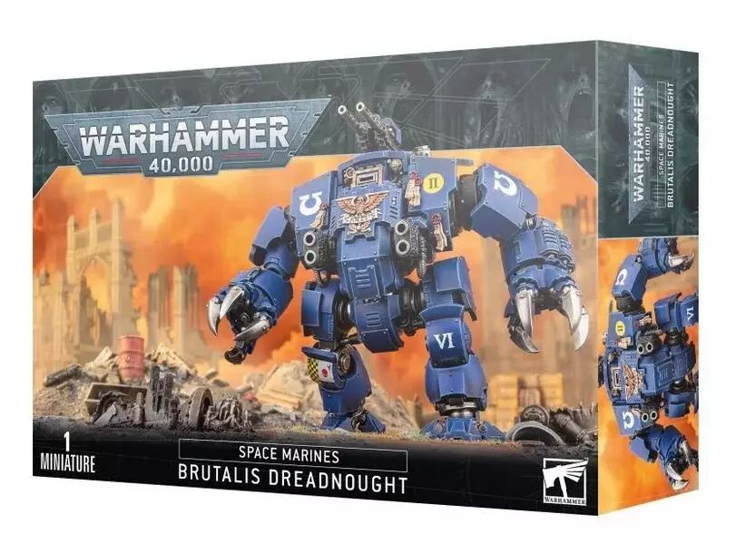 Le Dreadnought Brutalis est un briseur de lignes et une arme de terreur: ce marcheur de combat bipède est armé pour le corps à corps et piloté par un héros de son Chapitre tombé au combat. Cette énorme machine de guerre déchaîne une grêle de tirs de couverture tandis qu'elle se rue sur les lignes ennemies. Mais la plus grande menace est posée par ses bras massifs. Dotés d'énormes poings broyeurs ou de serres couvertes de céramite, ils peuvent écraser un guerrier en armure comme un fruit trop mûr ou percer un mur de bunker comme une feuille de parchemin.