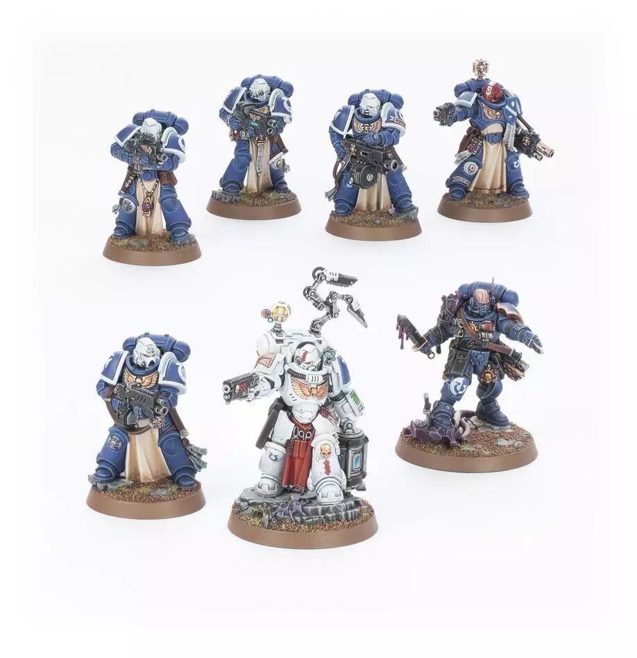 Le commandement de chaque Chapitre de Space Marines comprend des individus clés jouant un role de soutien primordial, des sous-officiers aux vétérans en passant par le personnel médical fiable. Les Lieutenants mènent depuis les premières lignesou au sein des lignes avancées, tandis que les Apothicaires Biologis équipés d'armures Gravis peuvent survivre à des tempêtes de tirs ennemis et utiliser leur vivispectrum pour récupérer des échantillons de biomatériel pour les analyser plus tard, que ce soit de la chair de xéno, des munitions d'armes virales ou de génotechnologie ésotérique.