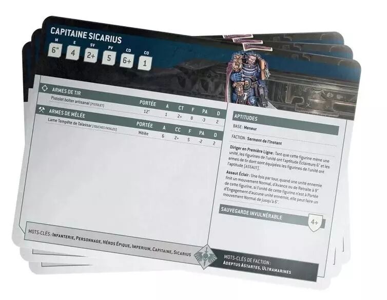 - 3x Cartes d'Index des Space Marines, détaillant les règles d'armée de la faction et le Détachement Force Opérationnelle Gladius