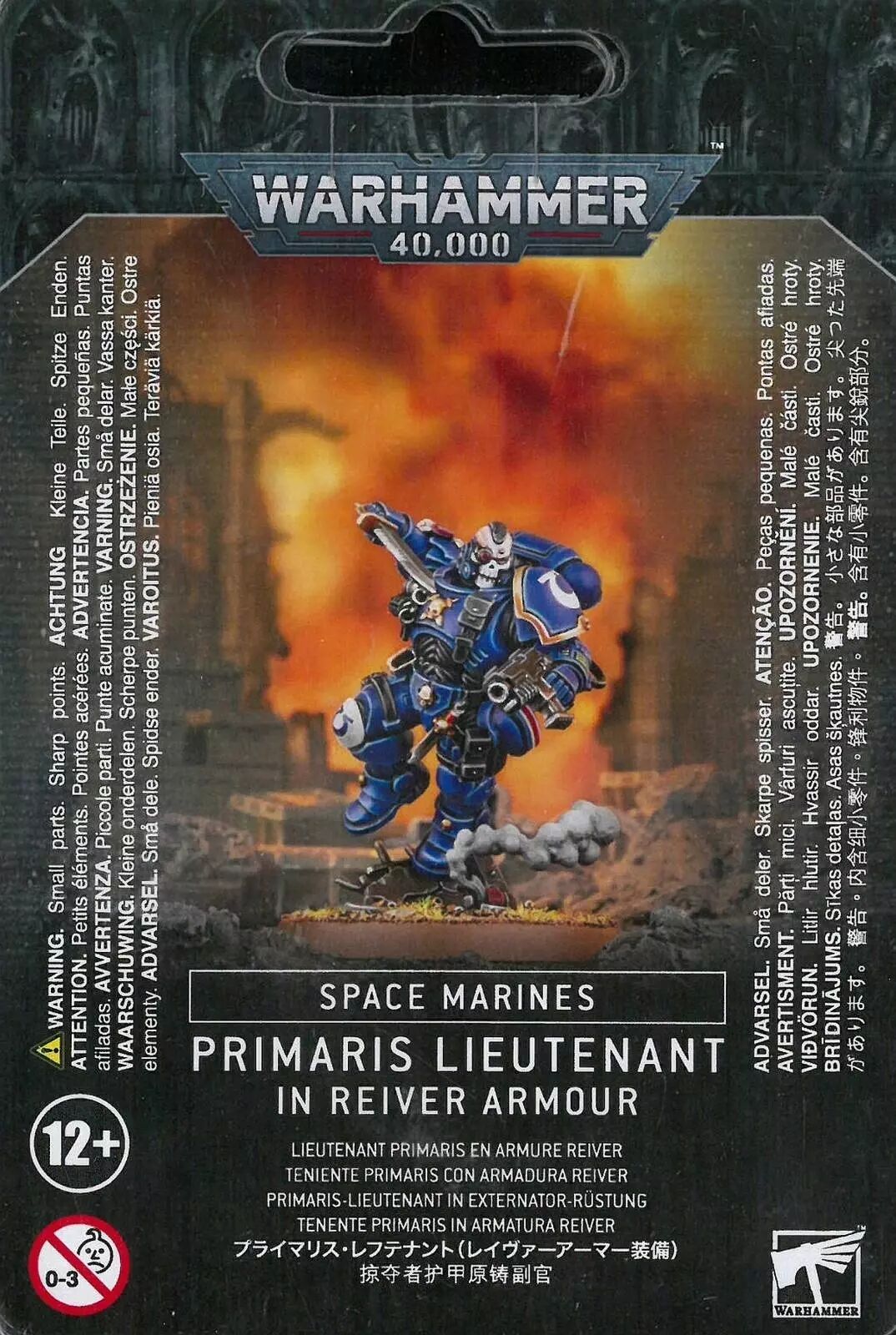 Dans son armure Mark X modèle Reiver, ce Lieutenant à la pose dynamique se précipite vers l'ennemi derrière un écran de fumée. On peut l'inclure dans n'importe quelle armée de l'Adeptus Astartes et c'est un guerrier des plus compétents, qui élève encore plus le niveau martial des troupes de son entourage.