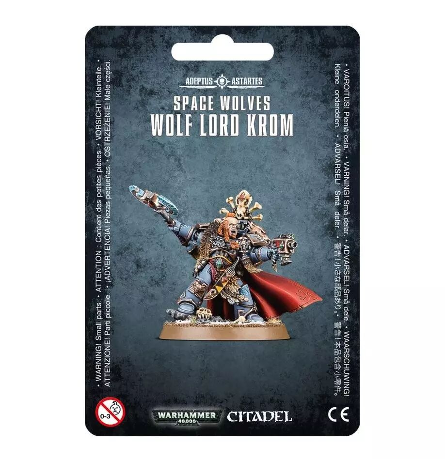 L'imposant Wolf Lord Krom est un guerrier extrêmement porté sur la compétition, qui ne vit que pour démontrer la supériorité martiale des Space Wolves. Il bondit sur la moindre occasion de prouver sa valeur, et ne laisse passer aucune opportunité de défier ses pairs, même s'il est notoire qu'il préfère de loin verser le sang de l'ennemi. Son surnom, ""Œil Féroce,"" lui vient de son regard intense et pénétrant, qui jauge avec précision les faiblesses de ses ennemis comme de ses alliés. Avec Wyrmclaw, sa hache de givre à l'équilibre parfait, il incarne l'agressivité des Space Wolves.