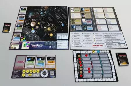 Par exemple, jouer des cartes Déplacement d'une valeur totale de 5 vous permet de déplacer une équipe de la Terre vers un point de Lagrange Solaire. D'autres cartes permettent à une équipe sur un astéroïde ou une lune de l'explorer, ou de construire une base comme un spatioport, une raffinerie ou un laboratoire de biologie. Vous pouvez également jouer des cartes pour mener des recherches (tirer de nouvelles cartes), produire (tirer profit d'un site avec des ressources), faire de la génétique (acquérir des avantages génétiques pour vos équipes), faire des découvertes (progresser vers des percées technologiques), lancer des actions telles que des sondes spatiales et des prototypes.