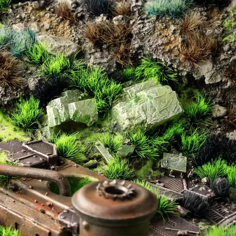 Touffes d'un vert criard. Idéales pour créer des paysages post-apocalyptiques, évoquant un sentiment de beauté désolée au milieu des débris d'une catastrophe nucléaire. Laissez libre cours à votre imagination en créant des ambiances immersives sur table qui vous transportent dans un royaume lointain et dangereux.
