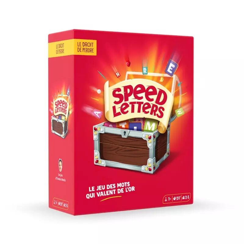 Speed Letters est une course de lettres où le but est de recréer un mot dévoilé au début du tour. Au top, chacun cherche dans son alphabet de 26 cartes un max de lettres faisant partie de ce mot pour les déposer dans le coffre et gagner le mot-trésor !