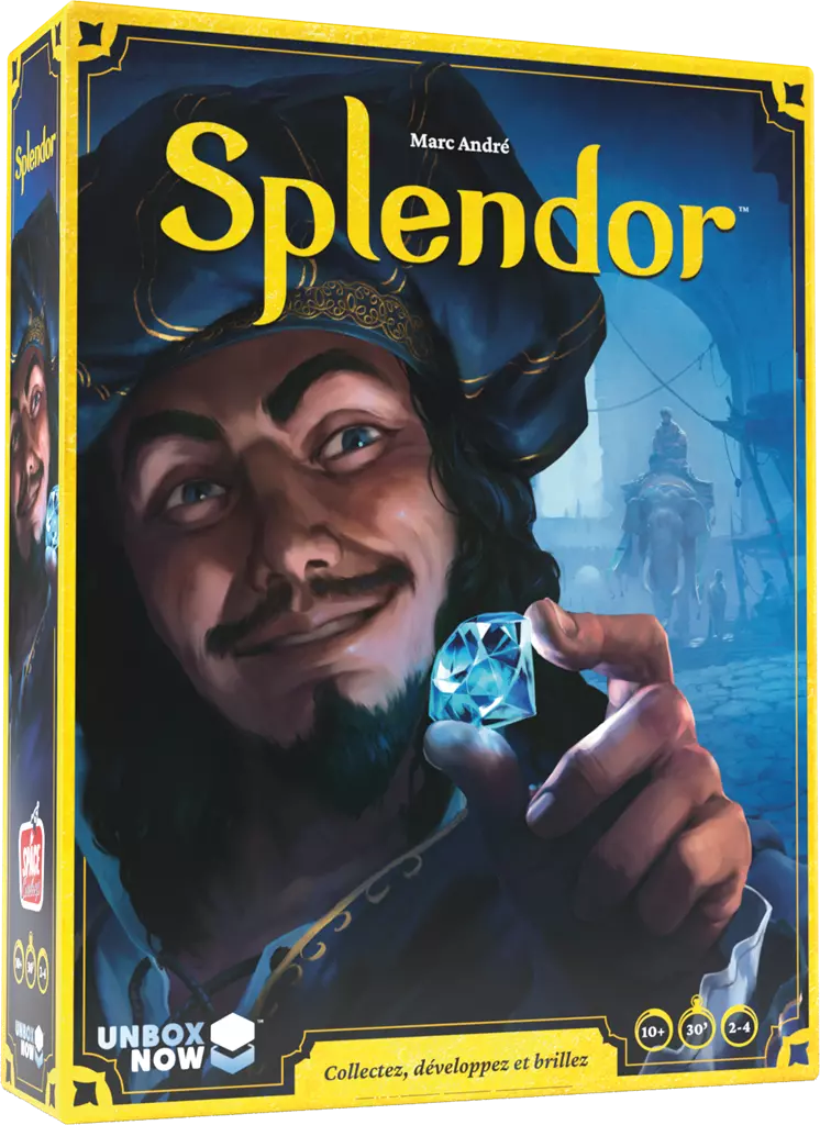 Dans Splendor, vous dirigez une guilde de marchands. À l'aide de jetons symbolisant des pierres précieuses, vous allez acquérir des développements qui produisent de nouvelles pierres (les bonus). Ces bonus réduisent le coût de vos achats et attirent les nobles mécènes.