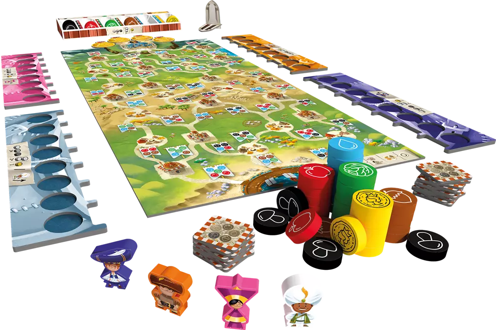Dans cette adaptation familiale du célèbre jeu Splendor, chaque joueur collecte des ressources (eau, chou, pomme…) qu’il utilise ensuite pour progresser sur le plateau. Les villes permettent de gagner des ressources permanentes, tandis que les villages offrent l’opportunité de rejouer. Choisissez la meilleure stratégie pour atteindre les Portes du Palais avant leur fermeture : une parfaite initiation au jeu de société pour les enfants.