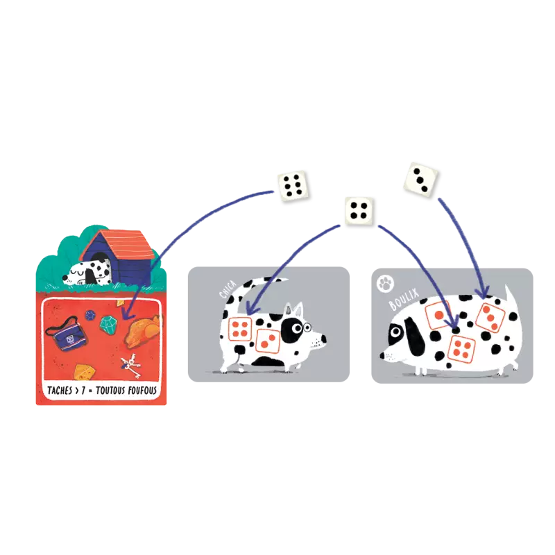 Chaque tour de jeu est une course contre la montre. Vous devez valider vos cartes Toutou avant que les dés ne vous pénalisent. Et si vous ne pouvez plus les placer, ils seront enterrés sous votre niche. Avec une limite de 7, la tension monte rapidement, rendant chaque tour captivant et riche en surprises.