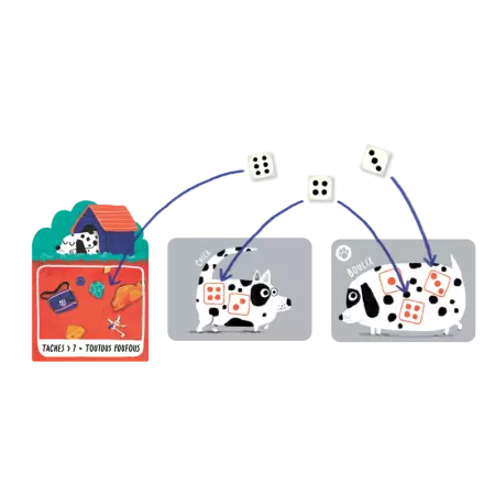 "Spots ou Encore" propose une expérience de jeu conviviale et facile à prendre en main. Les règles sont simples : placez vos dés sur les spots correspondants aux taches de vos chiots. Mais attention, chaque erreur peut vous coûter cher ! Ce jeu offre des moments de tension et de plaisir, sans être trop complexe, ce qui en fait un excellent choix pour des parties en famille.
