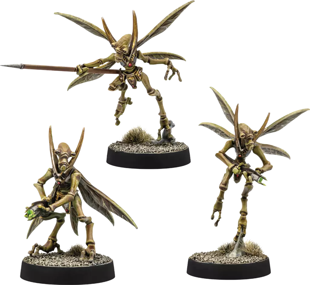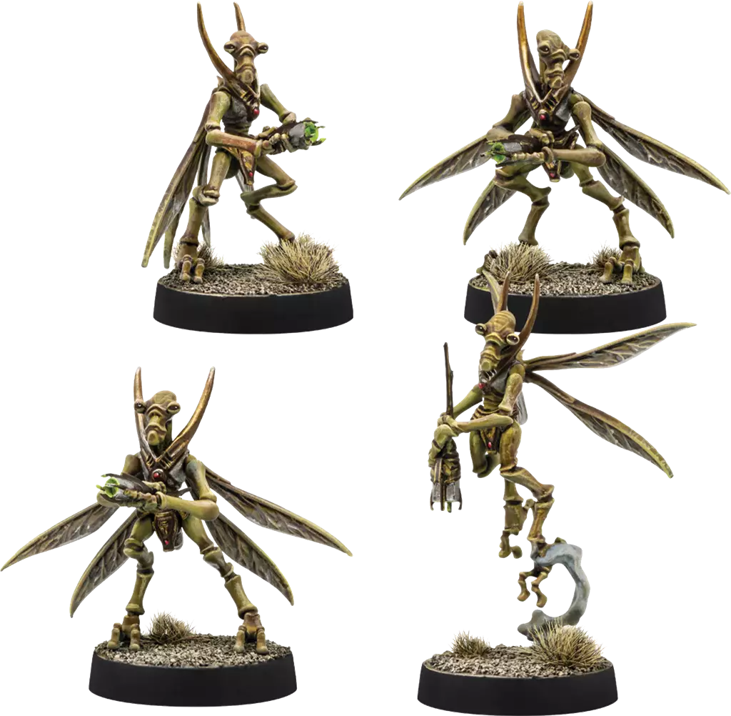 Les guerriers Géonosiens se voient attribuer leur rôle dès la naissance, à cause d’un système de castes régi par une Reine placée à la tête de la ruche. Contrairement aux ouvriers Géonosiens, les guerriers Géonosiens disposent d’ailes qui leur permettent de voler bien au-dessus du sol, mais aussi dans les catacombes souterraines de Géonosis. Comme d’autres insectoïdes, ils disposent d’un exosquelette robuste qui les protège efficacement des blessures. Face à des adversaires mieux armés qu’eux, les Géonosiens misent sur leur supériorité numérique pour attaquer en essaim et submerger les attaquants. Cette extension vous permet d’ajouter 1 unité de troupiers à votre armée.