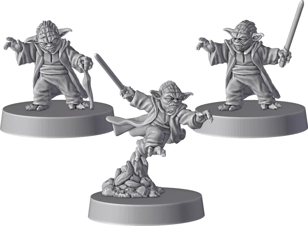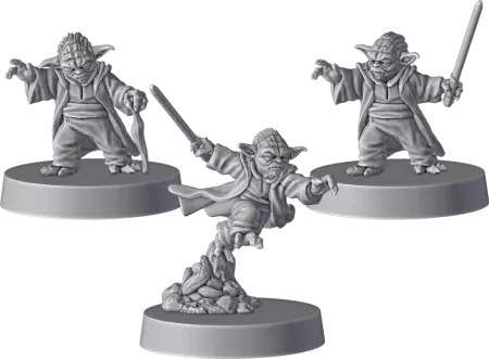 Cette extension ajoute le Jedi légendaire à votre collection Star Wars : Legion, en commençant par deux figurines de Grand Maître Yoda magnifiquement détaillées et non peintes qui peuvent être assemblées dans une variété de poses, comme en position de saut au combat ou en mode concentration tout en tendant la main pour user de la Force.