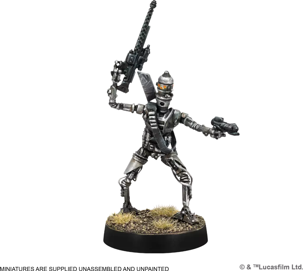 Les droïdes assassins accomplissent leurs missions de manière implacable, employant sans scrupules la force brute. Vous pouvez intégrer IG-11 et IG-88 en tant qu’agents dans des armées de l’Empire Galactique ou de l’Alliance Rebelle : ces mercenaires élimineront toujours leurs cibles. Grâce à leurs compétences létales, ces droïdes assassins n’hésiteront pas à abattre tous ceux qui se dressent entre eux et leur proie.