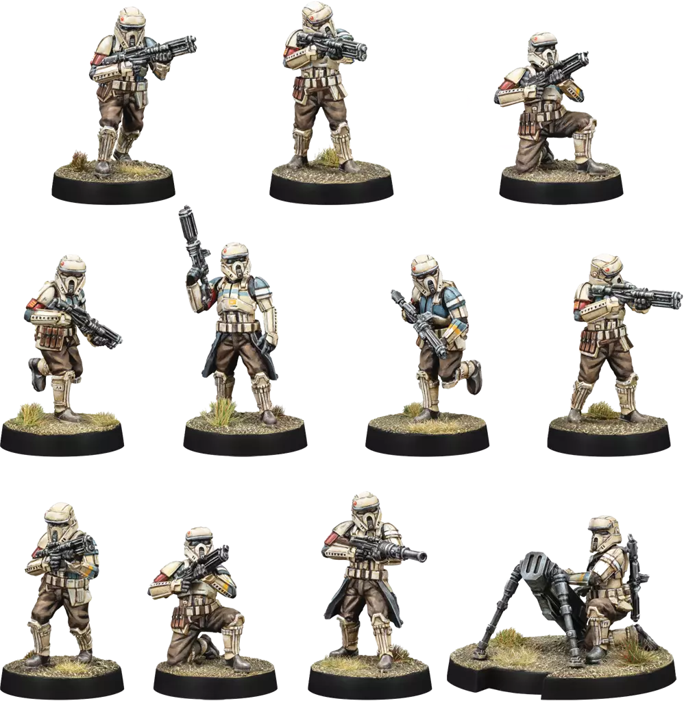 Pour tout joueur de l'Empire, les Shoretroopers représentent une alternative plus "élite" et plus tactique aux Stormtroopers de base. Ils sont souvent considérés comme l'une des meilleures unités de remplissage de rangs (Corps) du jeu grâce à leur synergie. Pour le peintre, c'est un pur plaisir : les teintes de beige, de bleu (pour les officiers) et les effets d'usure liés au sel et au sable permettent de créer des figurines magnifiques qui se démarquent nettement de la masse blanche des troupes classiques.