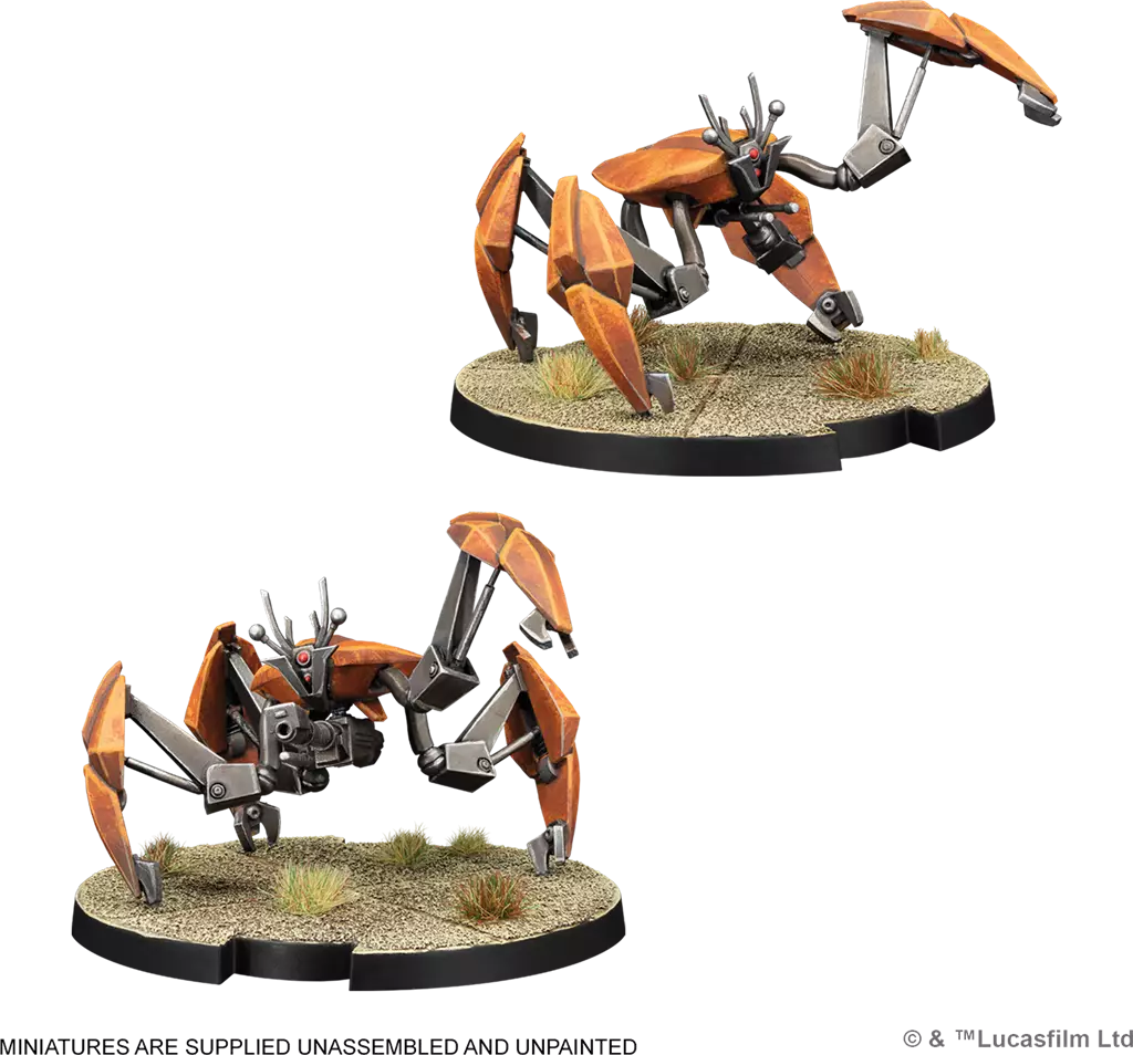 Connu sous le nom de « Muckracker », le LM-432 Crab Droid est un droïde de combat à quatre pattes qui prospère sur les terrains difficiles. Il est équipé d'un blindage lourd et s'appuie sur des optiques avancées pour soutenir les armées séparatistes à longue portée. Le Crab Droid est équipé de griffes mortelles efficaces en mêlée, bien qu'historiquement le LM-432 soit considéré comme vulnérable aux assauts directs. Avec leurs canons laser et leurs formidables profils défensifs, les Crab Droids sont un élément fiable des bataillons séparatistes.