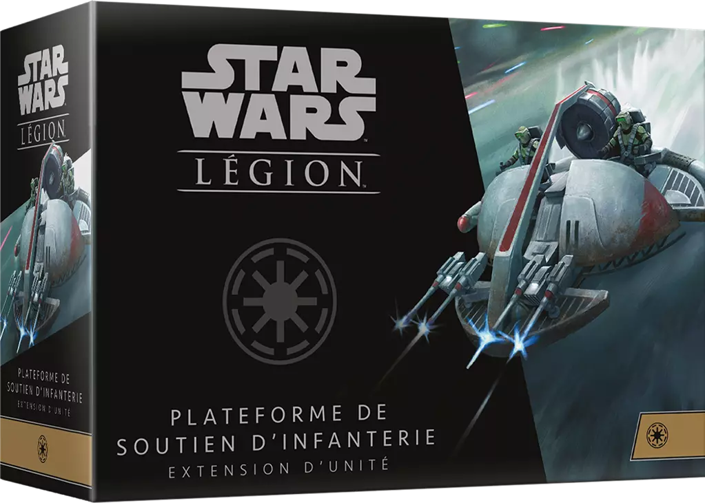 L’armée des Clones a profité, lors de la guerre du même nom, de supports technologiques cruciaux. La Plateforme de support d’infanterie leur a permis des déploiements rapides et efficaces sur de nombreux champs de bataille. Appuyé par deux batteries de blasters, ce véhicule agile et rapide est parfait pour les assauts rapides et les coups de main audacieux !