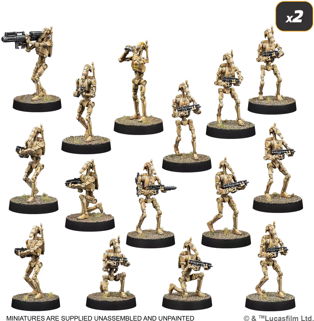 Que vous affrontiez les forces clones de la République ou d’autres factions galactiques, vos armées de droïdes offrent une redoutable combinaison de discipline, de nombre et de feu concentré. Planifiez, frappez et dominez la table avec précision et logique impitoyable.