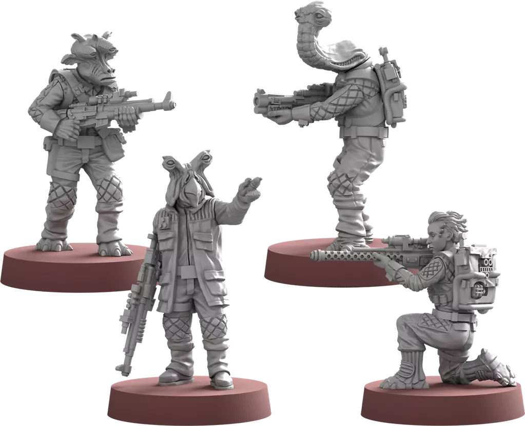 Cette extension vous procure tout ce dont vous avez besoin pour améliorer à la fois l'apparence de vos unités de Soldats Rebelles et la façon dont elles opèrent au combat. Vous trouverez quatre nouvelles figurines en plastique souple non peintes et finement détaillées de Soldats Rebelles dans cette extension, y compris un capitaine Soldat Rebelle Ishi Tib, un spécialiste Soldat Rebelle Gran, un soldat Ithorien avec SX-21 et un soldat Theelin avec DLT-20A. Une carte Unité vous donne la possibilité de composer une nouvelle unité à l'aide de ces figurines, tandis que sept cartes amélioration vous invitent à personnaliser n'importe quelle unité de Soldats Rebelles.