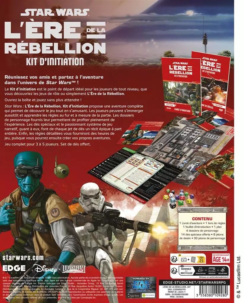 Le kit d’initiation est le point de départ idéal pour les joueurs de tout niveau, que vous découvriez les jeux de rôle ou simplement l’Ère de la Rébellion.