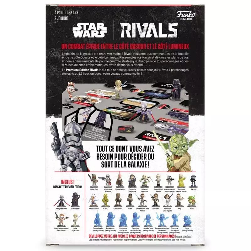 Ce premier set inclut 4 personnages exclusifs (Luke Skywalker, Dark Vador, Clone Commander Cody, Asajj Ventress), 12 cartes de localisations, un dé en forme de prisme, et tout le matériel nécessaire pour commencer à vous affronter en duel.