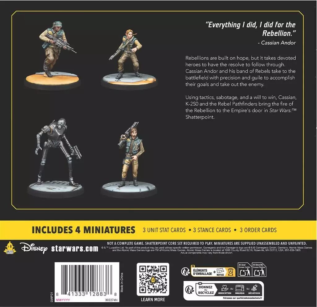 Les rébellions sont fondées sur l’espoir, mais il faut des héros dévoués et déterminés pour aller jusqu’au bout. Cassian Andor et sa bande de Rebelles rejoignent furtivement le champ de bataille pour accomplir leurs objectifs et éliminer l’ennemi avec précision. En déployant maintes tactiques et tentatives de sabotage, et avec une volonté à toute épreuve, Cassian, K-2S0 et les Arpenteurs Rebelles amènent le combat à la porte de l’Empire dans Star Wars™: Shatterpoint.