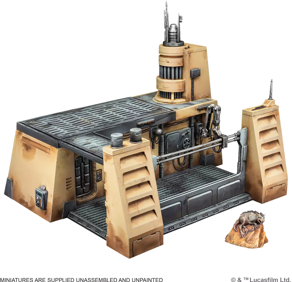 Mettez-vous à l’abri dans ce hangar de maintenance de la Bordure Extérieure ! Ce set de terrain ajoute un nouveau couvert à vos champs de bataille de Star Wars™:Shatterpoint, sous la forme d’un hangar de maintenance, accompagné d’un rat Womp, qui deviendra l’élément central de votre décor pour toujours plus d’immersion au cœur de cette galaxie lointaine, très lointaine...