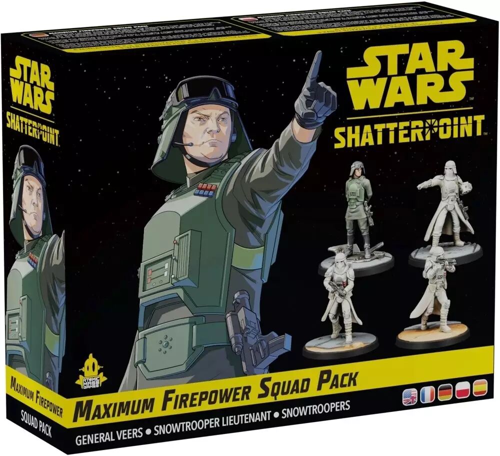Star Wars : Shatterpoint : Maximum Firepower est une extension Escouade jouable à 2 joueurs dès 14 ans pour des parties d'environ 90 minutes, édité par Atomic Mass Games.