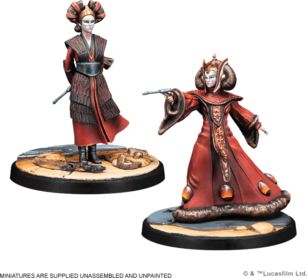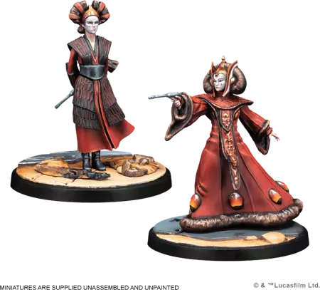 Elle est rejointe par ses courageuses servantes, y compris son leurre Sabe qui protège souvent Amidala en se faisant passer pour elle. En plus d'une escouade complète de quatre figurines - la reine Padme Amidala en tant qu'unité principale, Sabe en tant qu'unité secondaire et deux servantes royales de Naboo en tant qu'unité de soutien - qui peuvent être déployées ensemble ou aux côtés d'autres figurines de Star Wars : Shatterpoint/