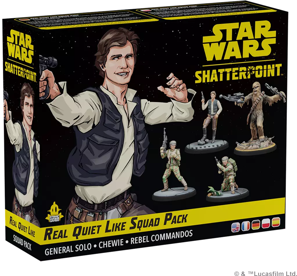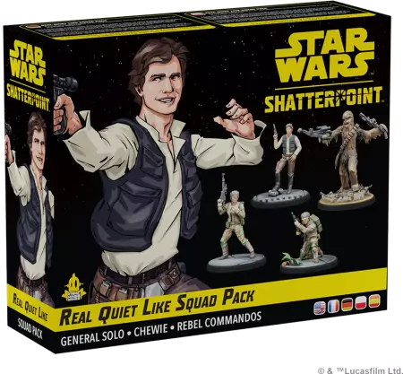 Le set d’escouade « Real Quiet Like » contient Han Solo, version Général en Unité Principale, le célèbre Wookiee Chewbacca, version Chewie et le Commando de Rebelles.