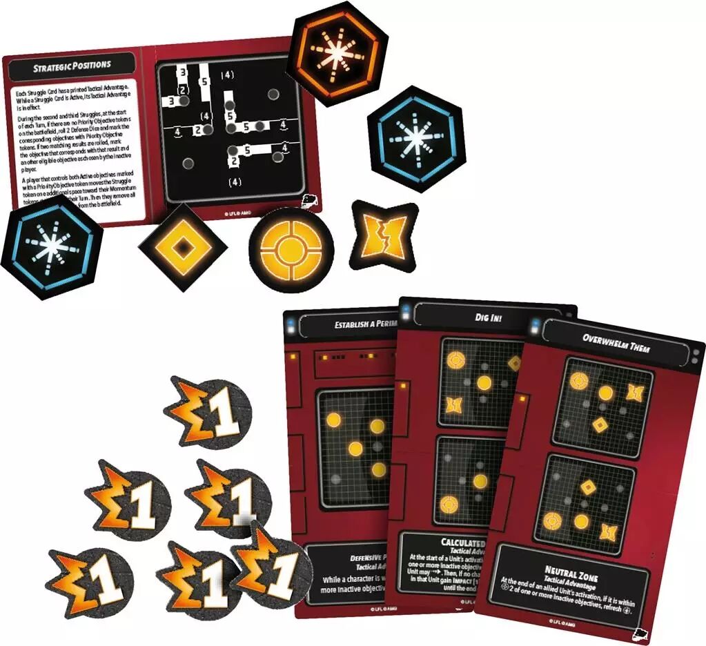 Altitude, couvert et débordement de l’ennemi sont des facteurs qui peuvent faire basculer le cours de la bataille. «Positions Stratégiques» ajoute un nouvel ensemble de 9 cartes Lutte (luttes I, II et III) et une carte Mission supplémentaire. Ce pack de cartes propose de nouvelles configurations d'objectifs qui mettent les équipes d'assaut au défi de réfléchir à leur positionnement, y compris des règles pour les avantages tactiques qui permettent aux joueurs de débloquer de puissantes capacités bonus pour certaines unités en fonction de la carte de mission active. Nécessite une boîte de base de STAR WARS™: Shatterpoint.