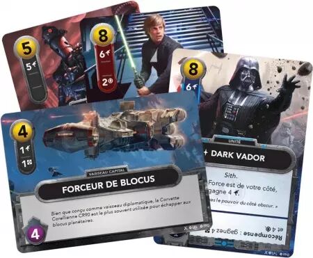 Dans ce jeu facile à apprendre, vous et votre adversaire choisissez chacun un camp, incarnant soit l'Empire, soit les Rebelles, et au fur et à mesure de la partie, vous renforcez tous deux la puissance de vos decks de départ et travaillez à la destruction des bases de l'autre. Le premier joueur à détruire trois des bases de son adversaire remporte la partie !