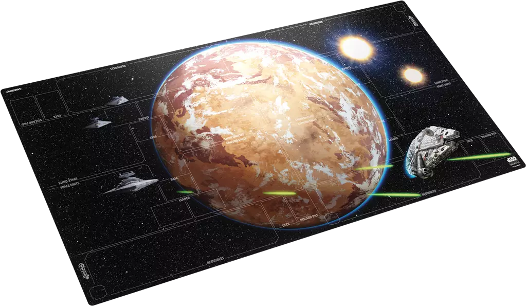 Ce tapis de jeu de la taille d'une table, de qualité supérieure, imprimé en couleur et sous licence officielle Star Wars™ : Unlimited Battle Zone est un accessoire indispensable pour tous les fans du format TWIN SUNS
