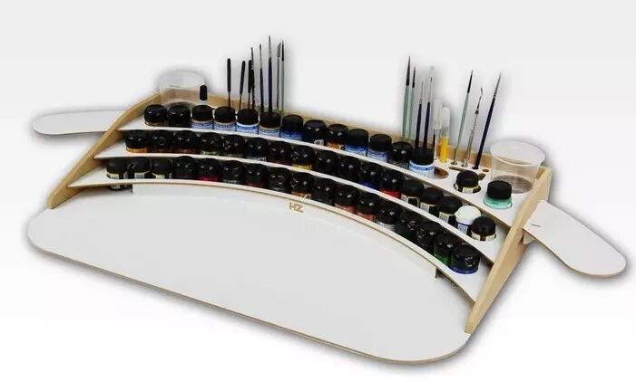 Les stations de peinture avec des fentes plus grandes - 36 mm permettent de ranger proprement les pots/bouteilles de peinture tels que :