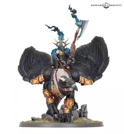 Ce kit plastique en plusieurs parties peut également être assemblé en tant que Lord-Vigilant sur Morrgryph, armé d'un Glaive sacré.