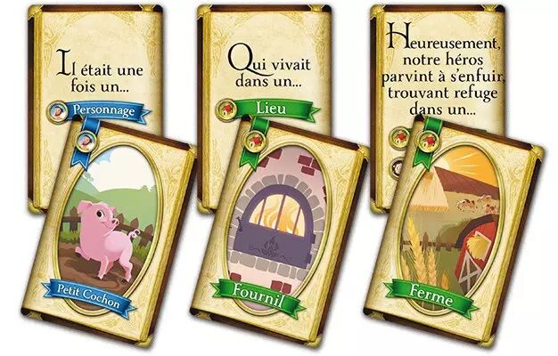 Contient 30 cartes « Narrateur », 100 cartes « histoire » illustrées, 21 jetons