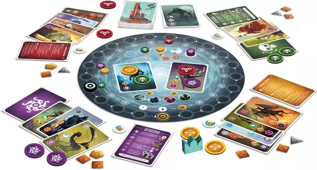 Styx propose plusieurs conditions de victoire claires et motivantes : être le plus influent, réussir à réunir les éléments essentiels, ou contrôler une armée dominante. Ce système permet aux joueurs de varier leur style, de se réinventer à chaque partie. Le matériel généreux, avec ses nombreux jetons et cartes, garantit une immersion haute en couleur et une expérience renouvelée.