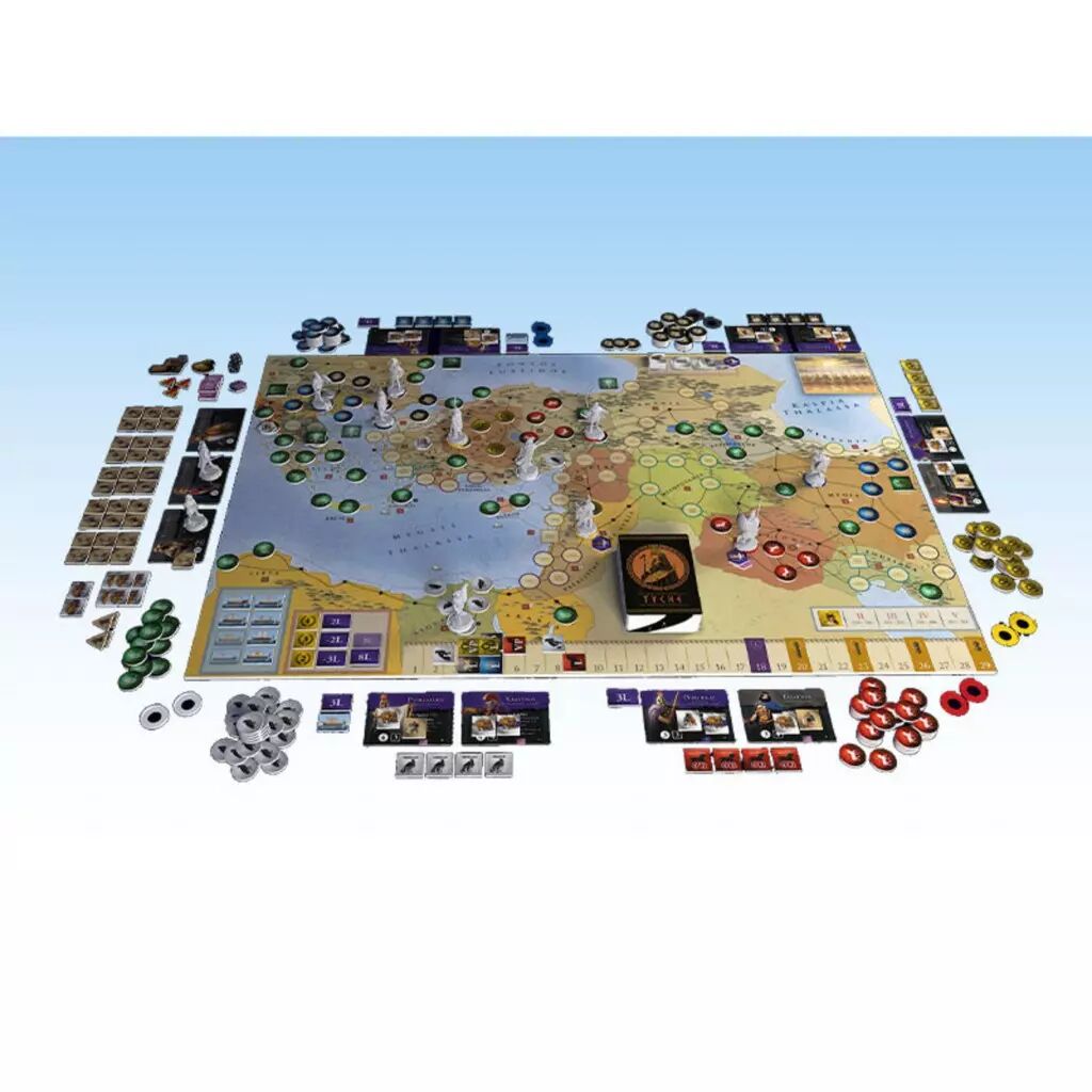 Fin de tour : vérification si une des 4 condition de victoires est remplie par un joueur. En atteignant un nombre de points de victoire déterminés en fonction du nombre de joueurs. En ayant le plus de points de victoire à la fin des 5 tours de jeux. En faisant monter sur le trône un des deux fils d’Alexandre tout en ayant un total de points de victoire et de légitimité supérieur à tous les autres joueurs. En atteignant 18 points de légitimité.