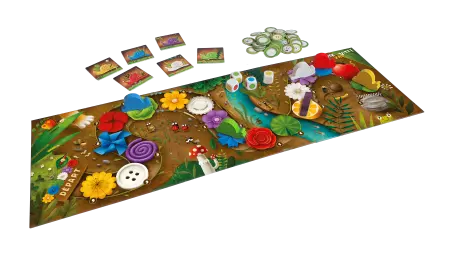 À votre tour, lancez les 4 dés de couleurs. Chaque dé permet de déplacer un escargot s'il est de la couleur indiquée OU s'il se trouve sur une fleur de la couleur du dé.