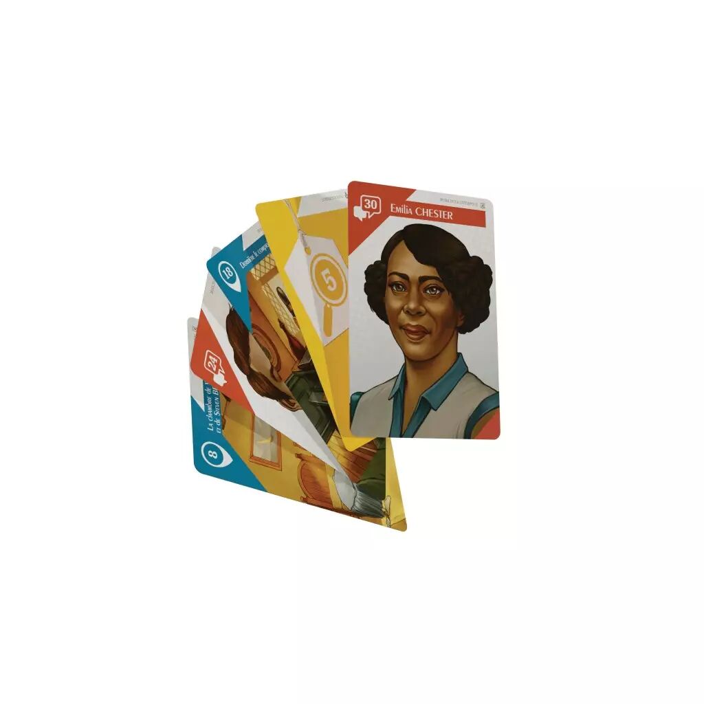 Les cartes d'indices vous permettent d'interroger les personnages, de parcourir les lieux et d'examiner les objets.